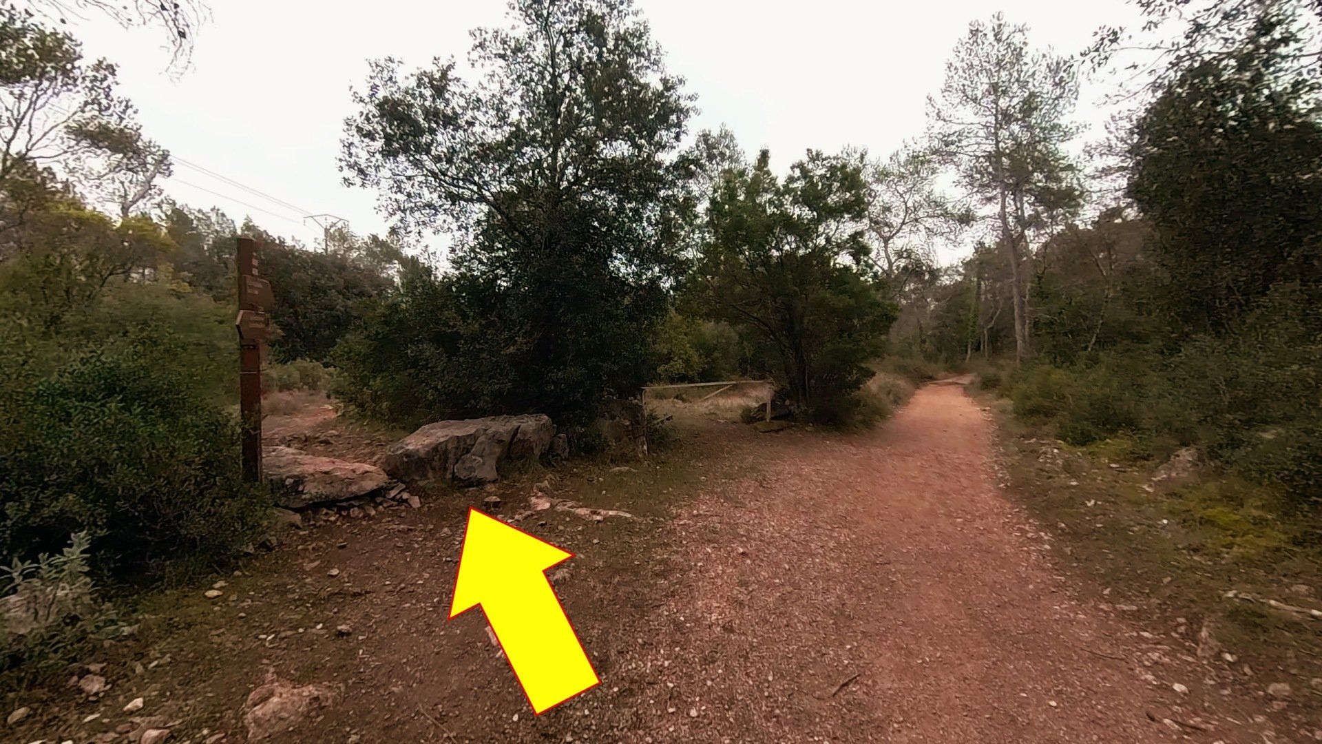 Pour retrouver les ruines, il faut emprunter le deuxième sentier qui quitte la piste sur la droite. Encore une fois, Google Maps vous confirmera cette indication.