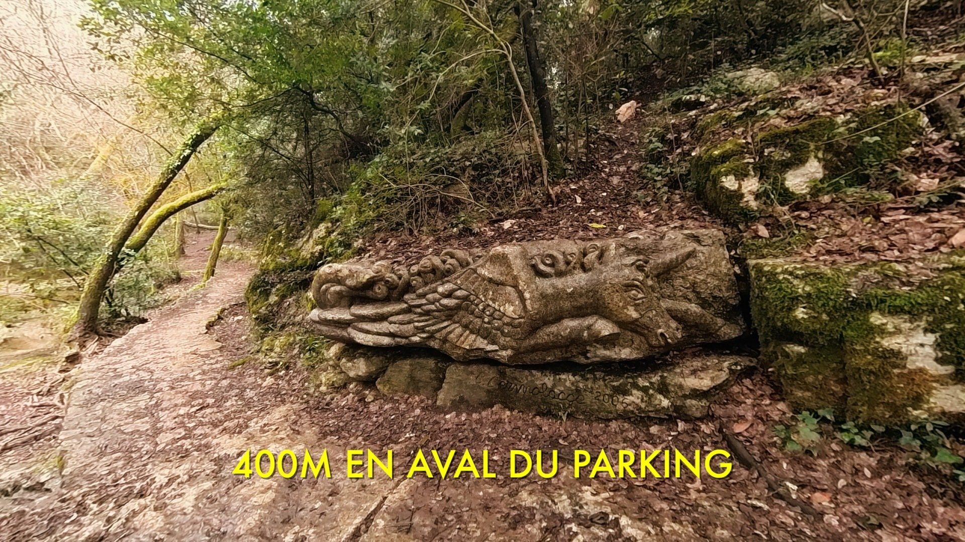 Il y a ensuite quelques jolies vasques et cascades mais je vous invite à aller découvrir les éléments en aval du parking de la Verrière, et notamment la sculpture sur pierre de la Licorne, 400 mètres après le parking.